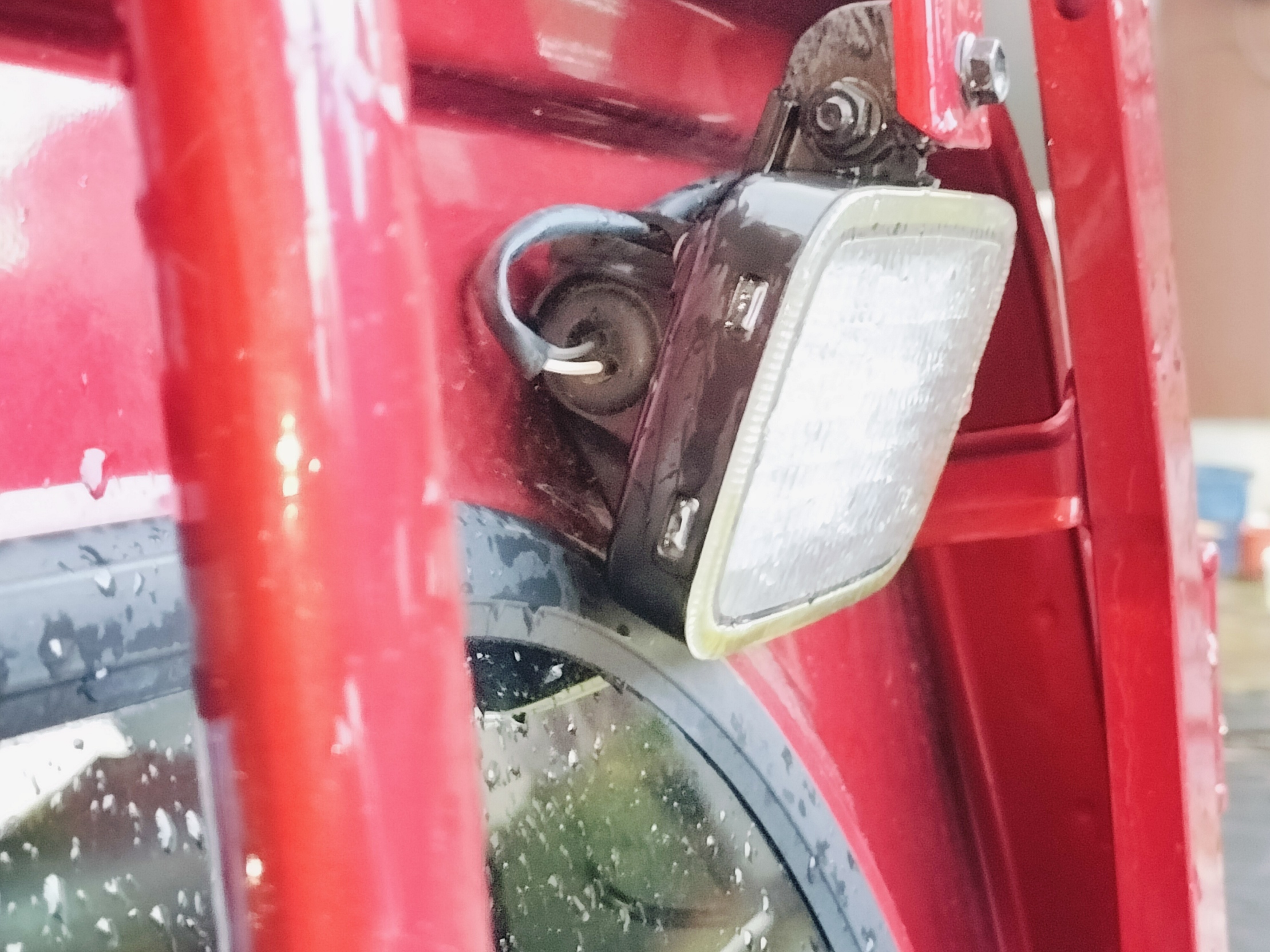 いつだったかなぁ珍しく作業灯を使ったときに、角度を下向きに調整したんですね。最近さむくなってきたら、下に向けた作業灯の下側とリアウィンドウのゴム部分が当たってコトコトコトコトしていたんですね。