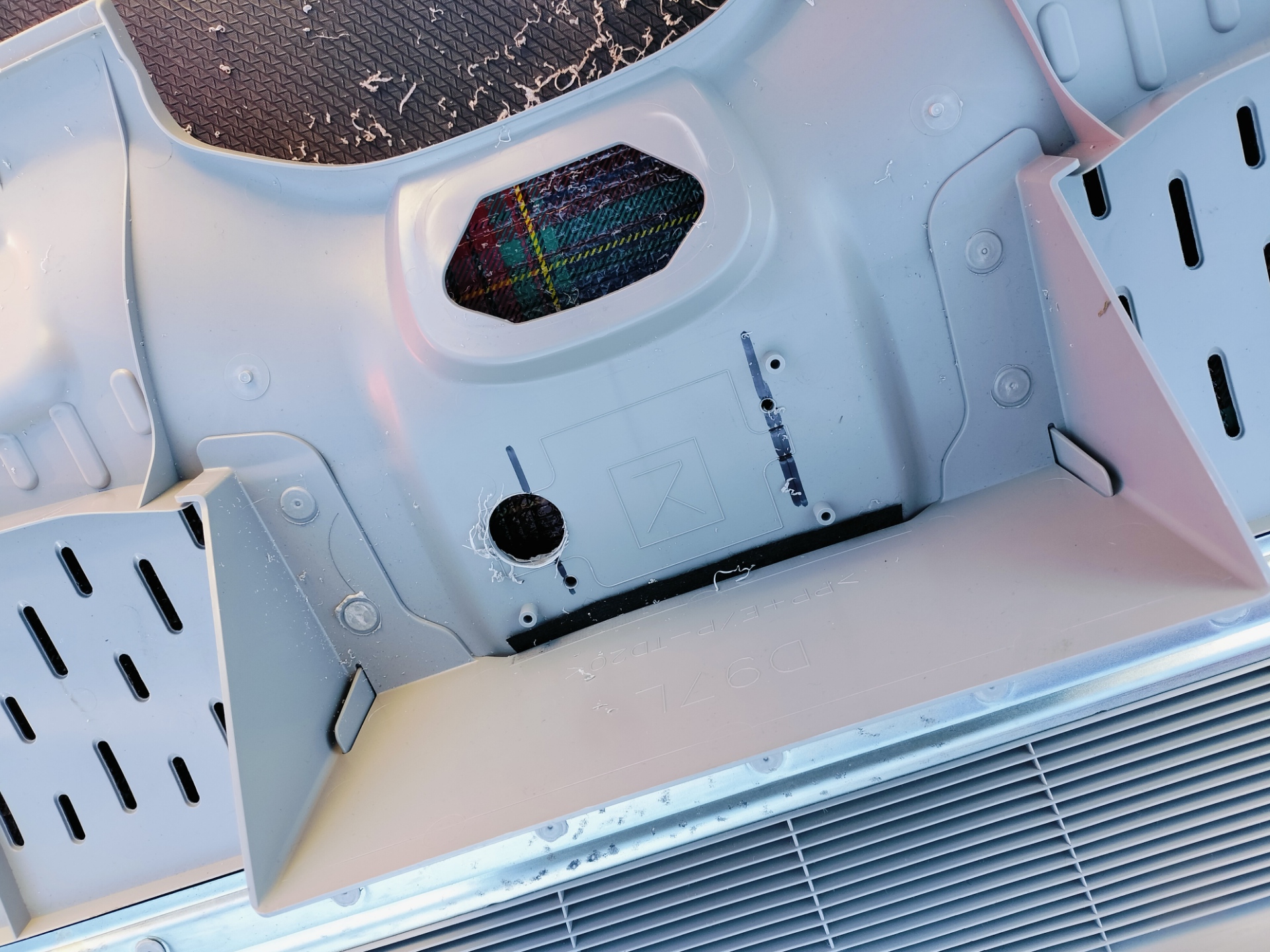 いざ取付!オーバーヘッドシェルフを外したら“切り取り枠”を発見